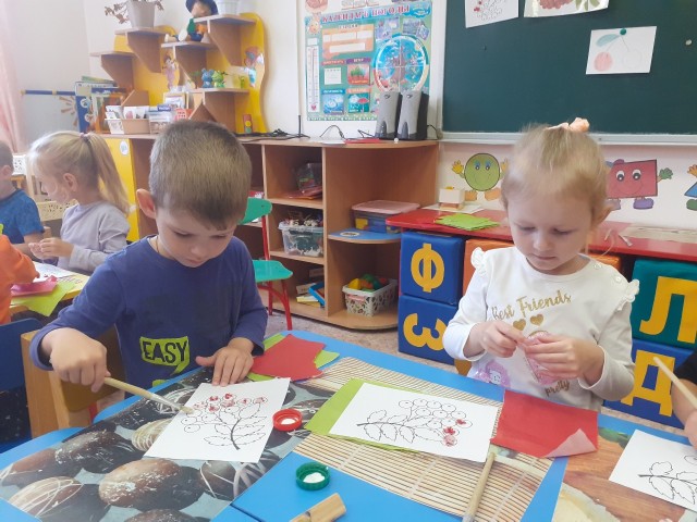 Сегодня на прогулке мы любовались красотой осенней природы.