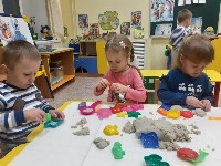 Кинетический песок — материал для детского творчества с высоким показателем полезности! Лепка из кинетического песка — вид песочной терапии, которая тренирует у детей внимание и усидчивость, снимает эмоциональное напряжение, развивает творческие способности, дарит радостные эмоции. Наши ребята с удовольствием создают из песка удивительные поделки!